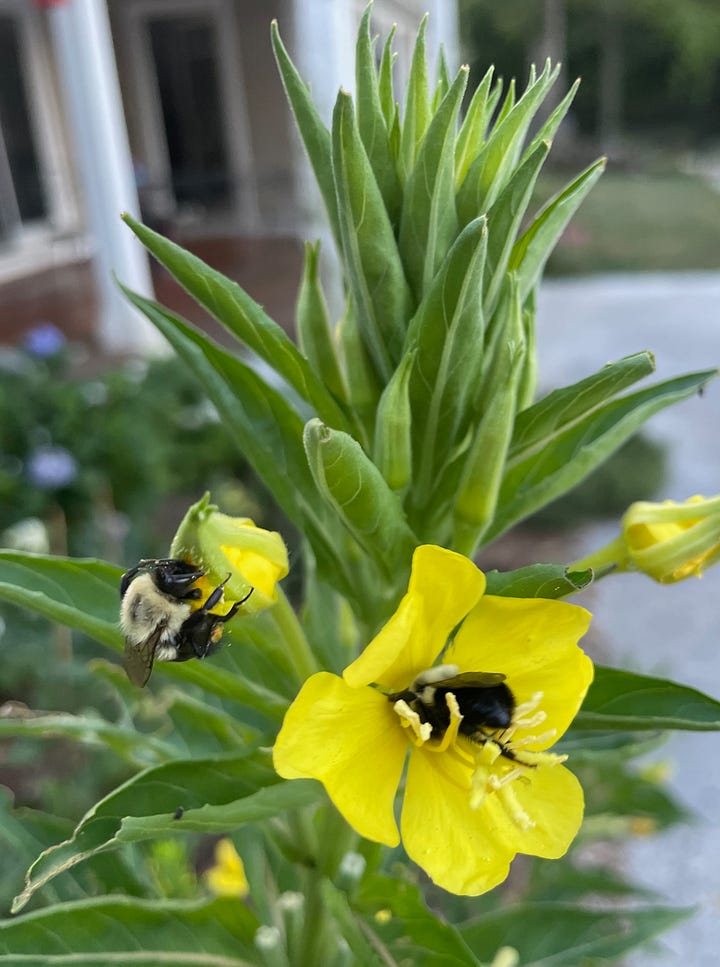 Mistake #3: Even when I do the right thing, I seem to have a way of going wrong. A few years ago, a common evening primrose showed up and I encouraged it even as it grew much too high for the location. It’s a native species and its yellow flowers attracted the attentions of bumblebees and ruby-throated hummingbirds, which was gratifying. But primroses turned up everywhere the following year, crowding the lupines, invading the strawberry bed, and otherwise making themselves a nuisance. So I started to rip them out. Then, last week, I ran into a lovely column about these primroses on the highly recommended Chasing Nature substack, by my colleague Bryan Pfeiffer. The flowers open at night and close by day, he wrote, and when they close the petals often wrap snugly around one of their pollinators, the primrose moth, which then spends the day safely napping within this floral shelter.