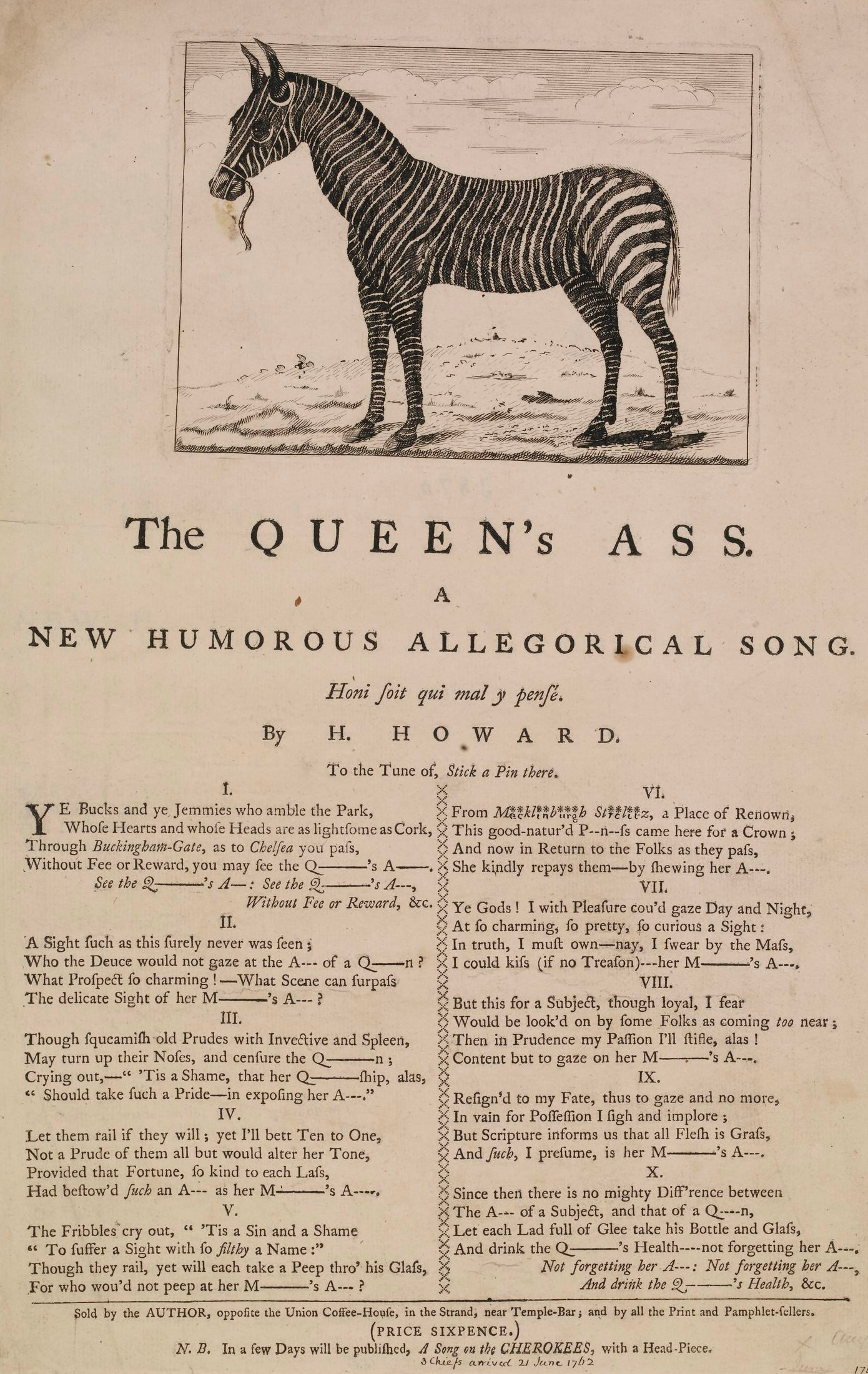 Browse this selection of gallery labels for the Stubbs painting, on display at the Yale Center for British Art, from 2025, 2016, and most curiously, 2007. The zebra, a favorite of Queen Charlotte, was popularly referred to as “The Queen’s Ass.” That evidently became an occasion for a different source of consolation, making fun of royalty. Sadly, I have been unable to find a TikTok of anyone singing this song. Send me your very passable version and I’ll post it here in two weeks.